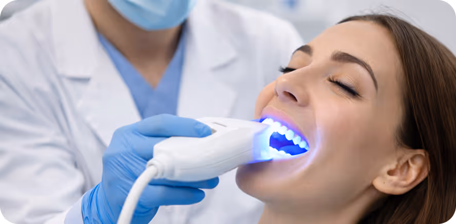 Estetica dentară include proceduri pentru îmbunătățirea aspectului zâmbetului, precum albirea dentară pentru îndepărtarea petelor.
